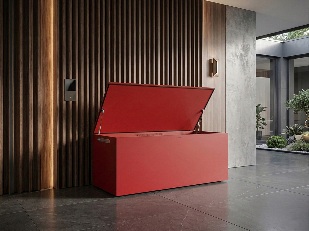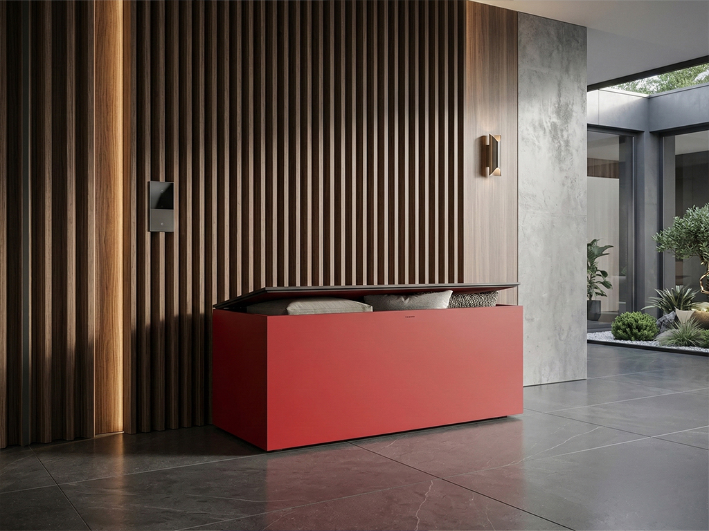 Wer keine Lust auf Einheitsgrau hat, setzt mit der Kissenbox in Signalrot ein Design-Statement. Doch hinter der Fassade steckt knallharte Technik.